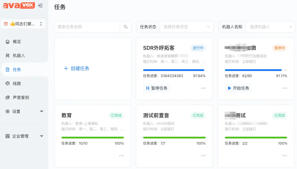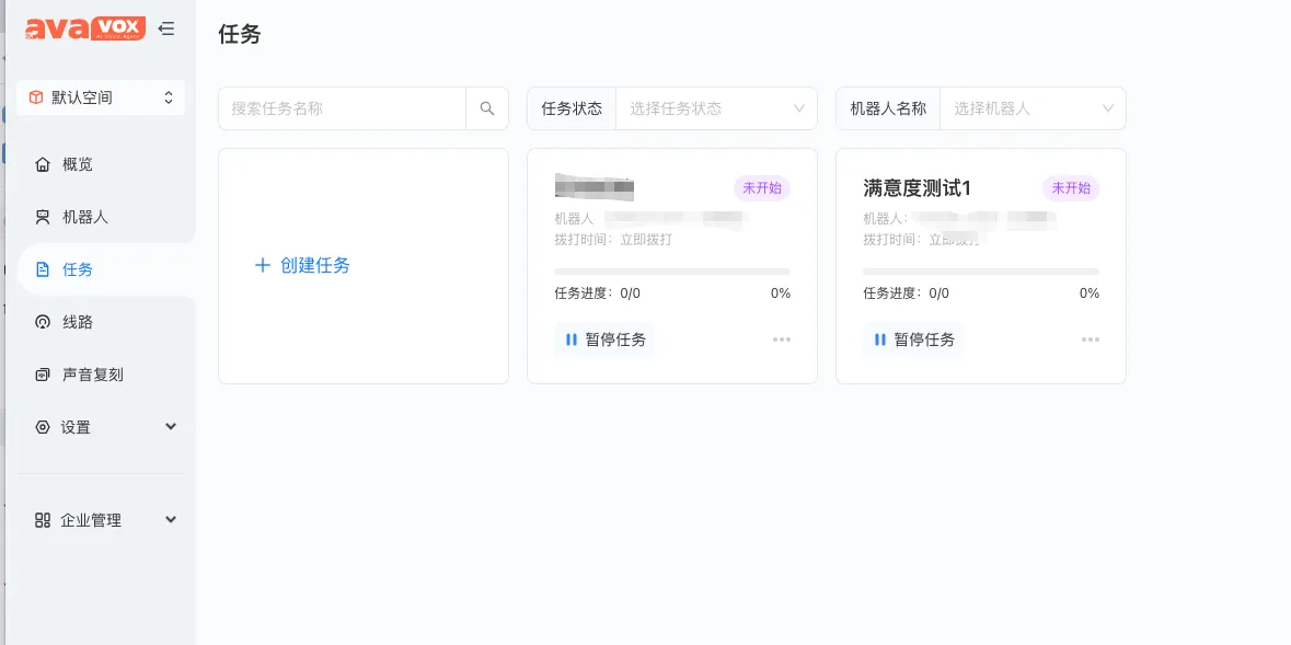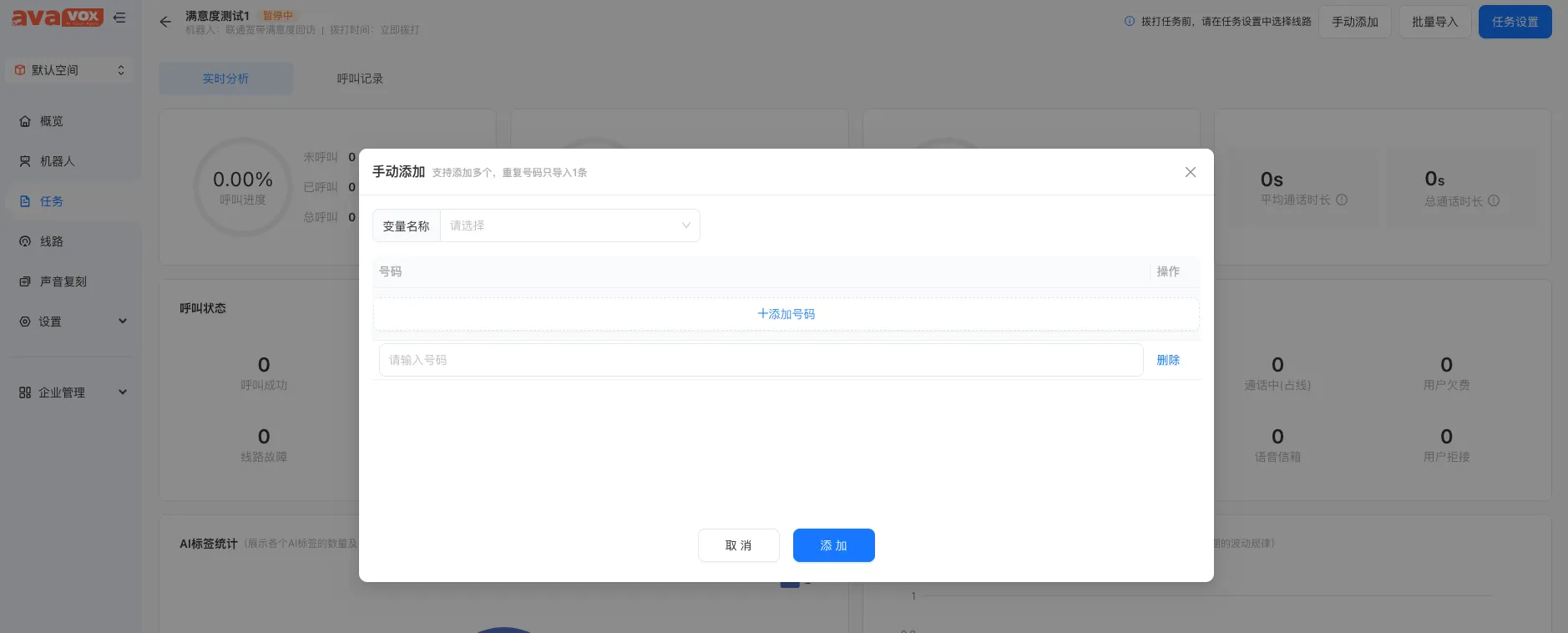 - 选择线路:选择可用的通话线路,用于任务拨打,不选择即使用当前空间的所有可用线路进行拨打。