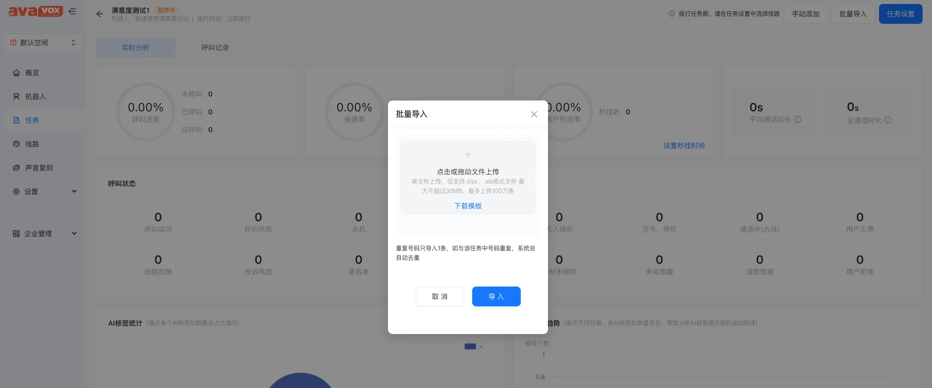 (注:重复号码在一个任务中只能导入 1 次,系统会自动去重)